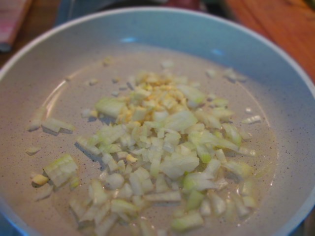 - В мазнината задушавам за кратко, нарязаната на ситно глава кромид лук.