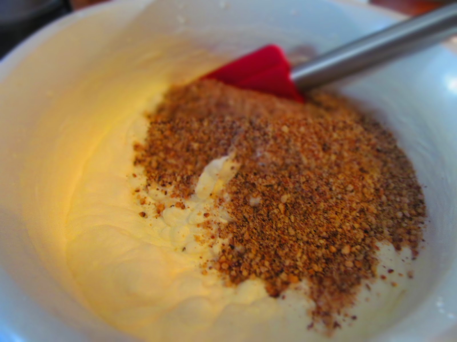 - Добавям запечените и охладени лешникови ядки. Разбърквам само с шпатулата и много нежно, като загребвам отдолу нагоре. Ако бъркате много бързо и интензивно има опасност сметаната да загуби от своя обем.