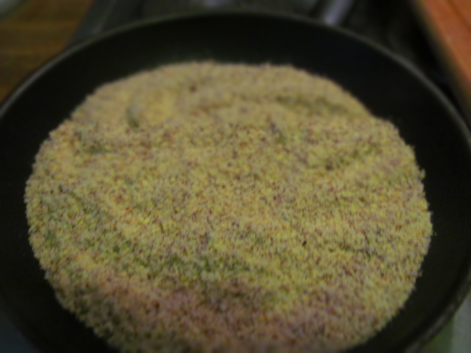 - В сух тиган изсипвам смлените лешникови ядки и с постоянно разбъркване ги запичам до леко оцветяване в по-тъмен цвят.