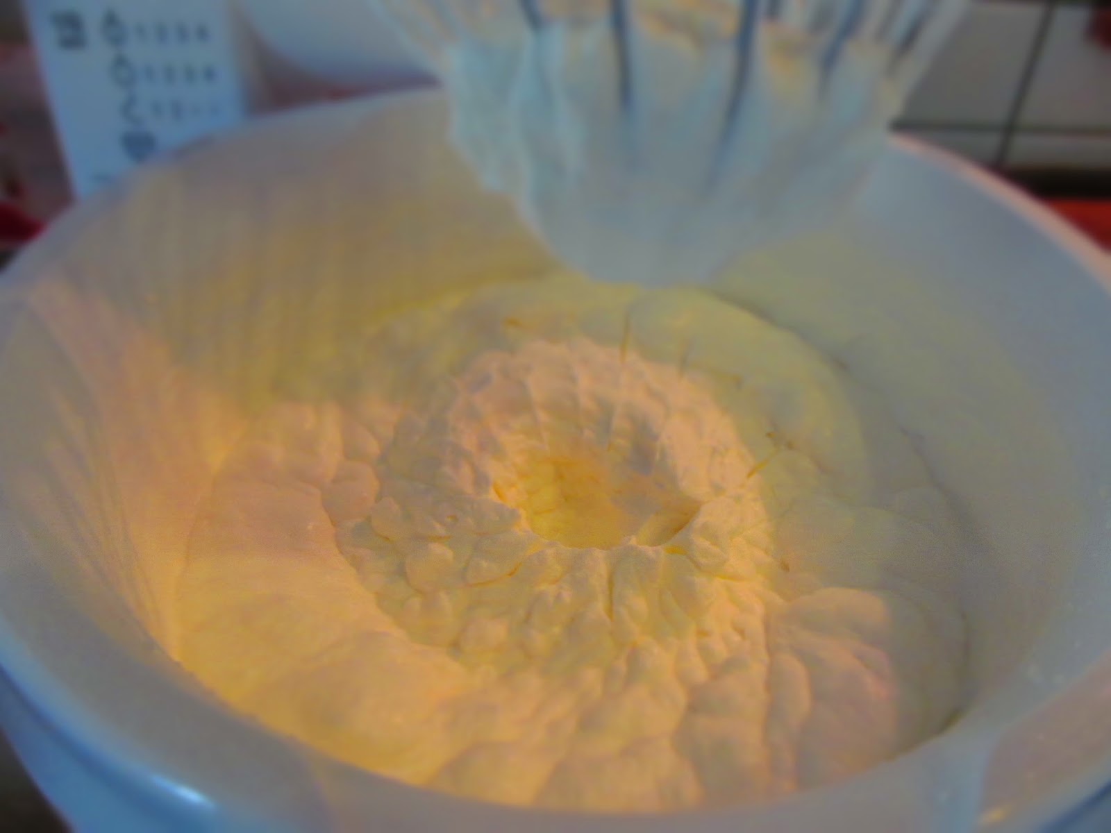 - Добавям малко белтъци, бъркам нежно. Добавям отново брашно, бъркам нежно и така до усвояването на цялата суха и всичките белтъци. Старая се да завърша с белтъци.