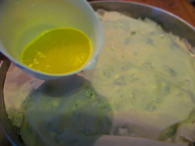 - Завършвам с кора, която поръсвам обилно с разтопеното краве масло.