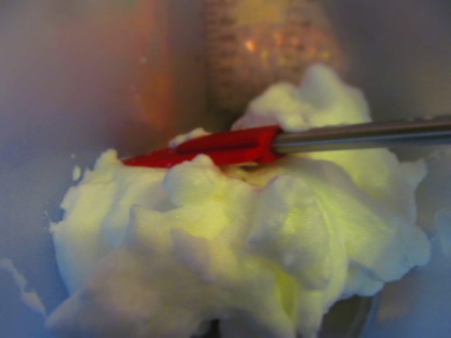 - Белтъците разбих с миксера на сняг. Прехвърлих в друга купа.