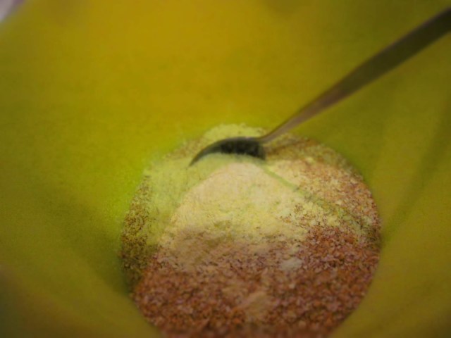- Смесих нахутеното брашно с бакпулвера и после добавих към триците.