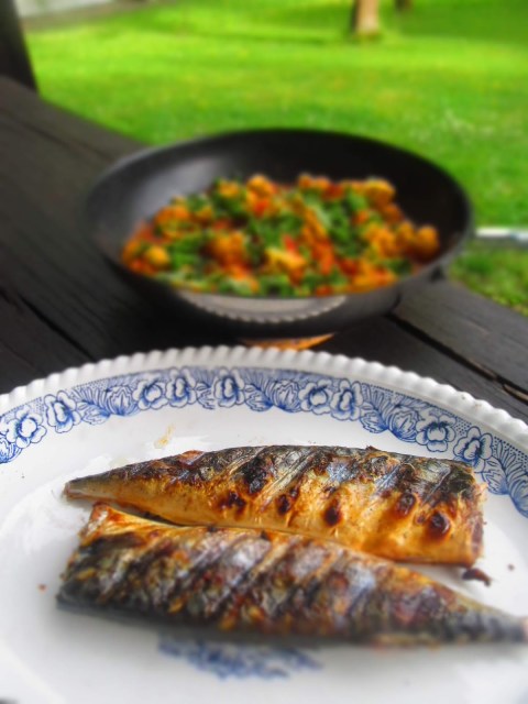 126 гр скумрия изпечена на скарата, без кожа и без кости неделната вечеря