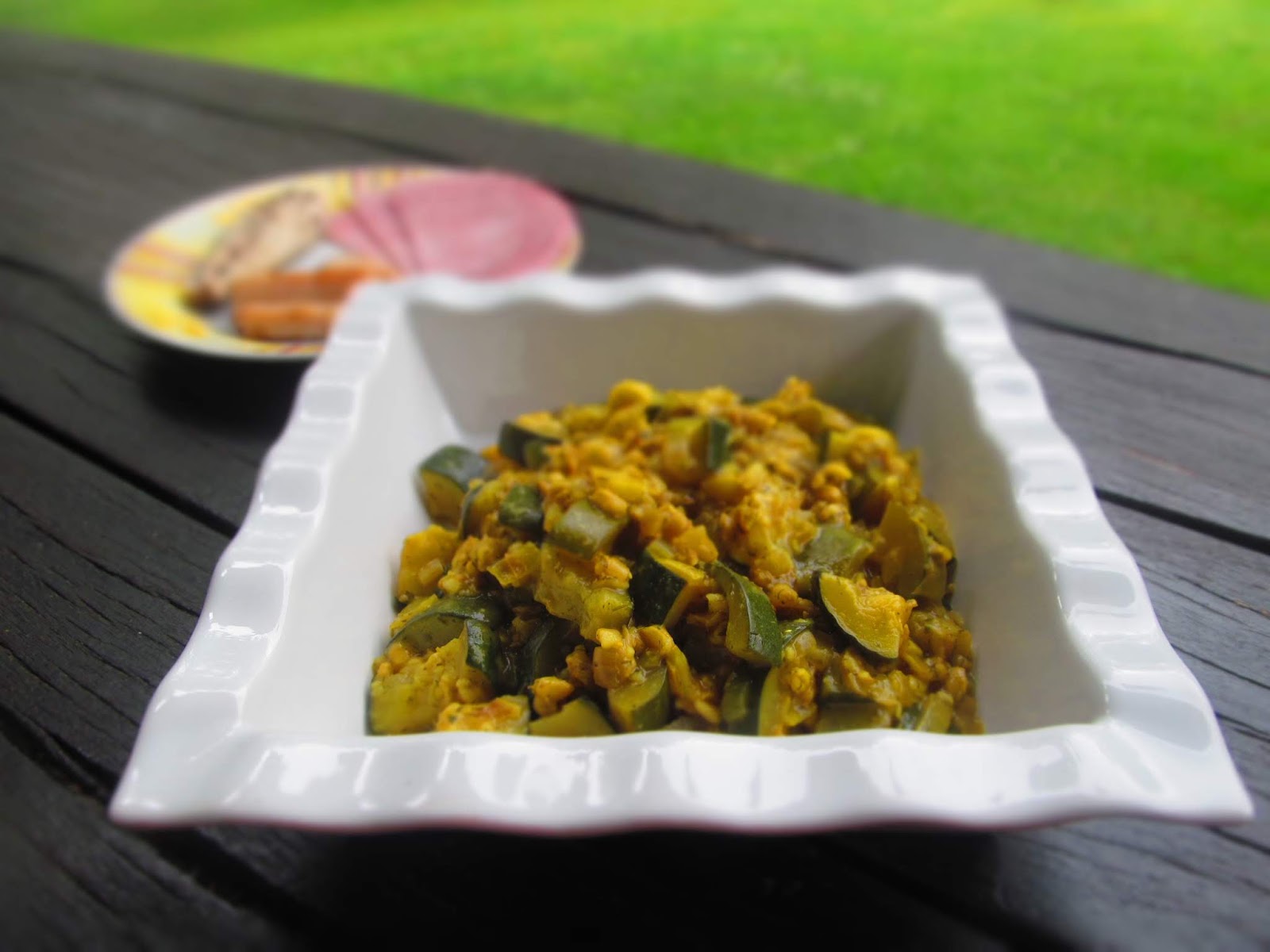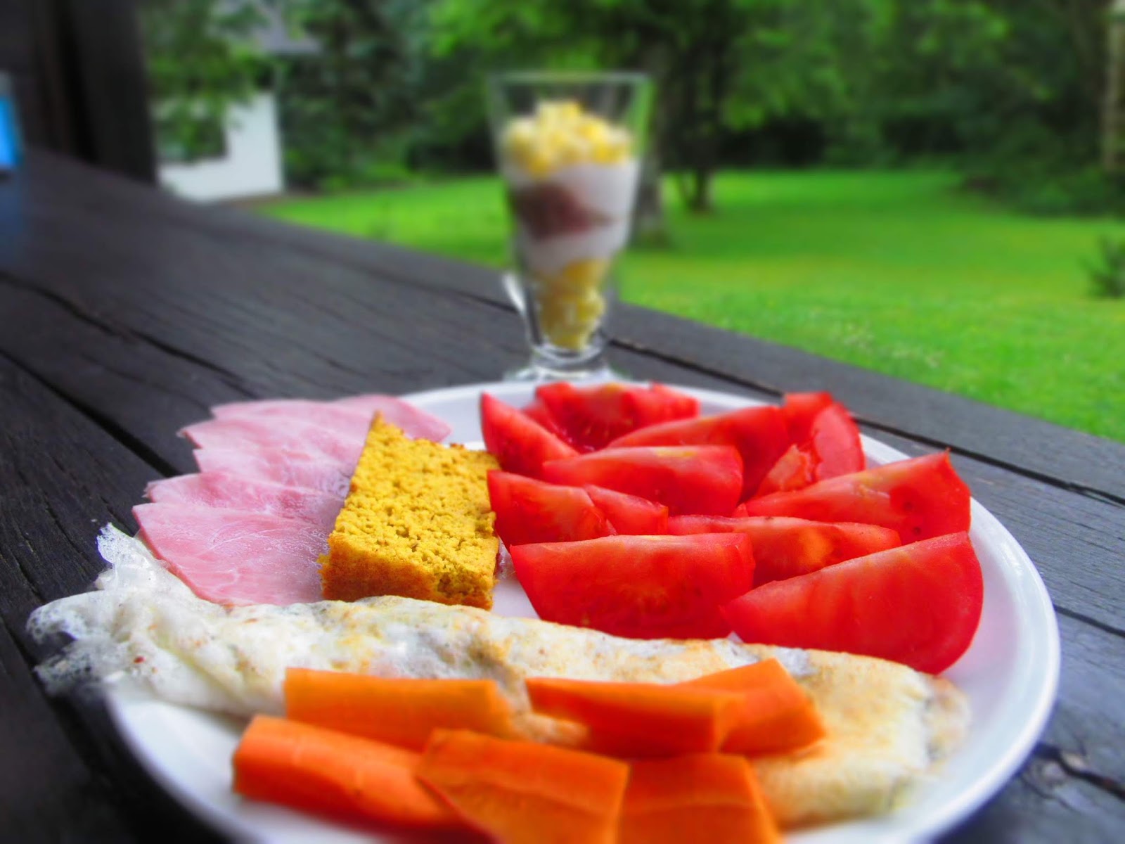 И, за да запълня обяда с протеини прочистих хладилника. Беше ми останало пилешко филе, малко риба и шунка. Измерих така, че да отговарят на 3БП.