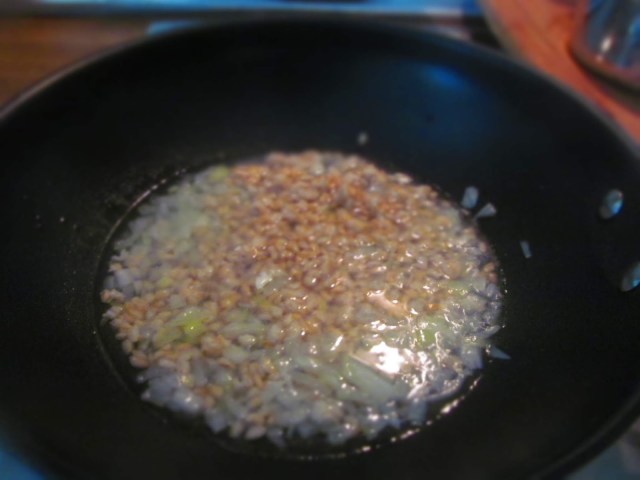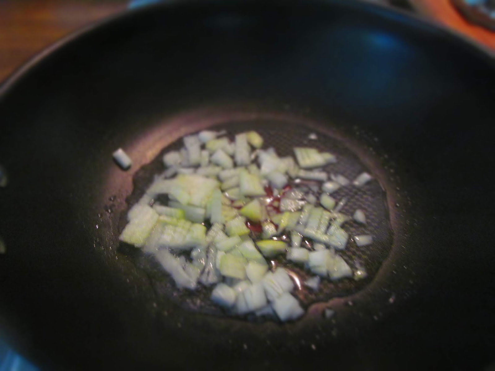 В уок тигана смесих олиото с малко вода и задуших ситно нарязания кромид лук до омекване.