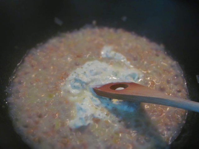Добавих сварения овес и още 100 мл вода. Варих около 5 минути.