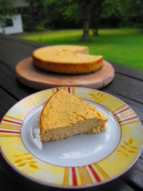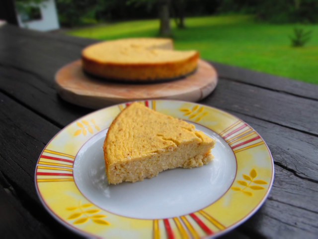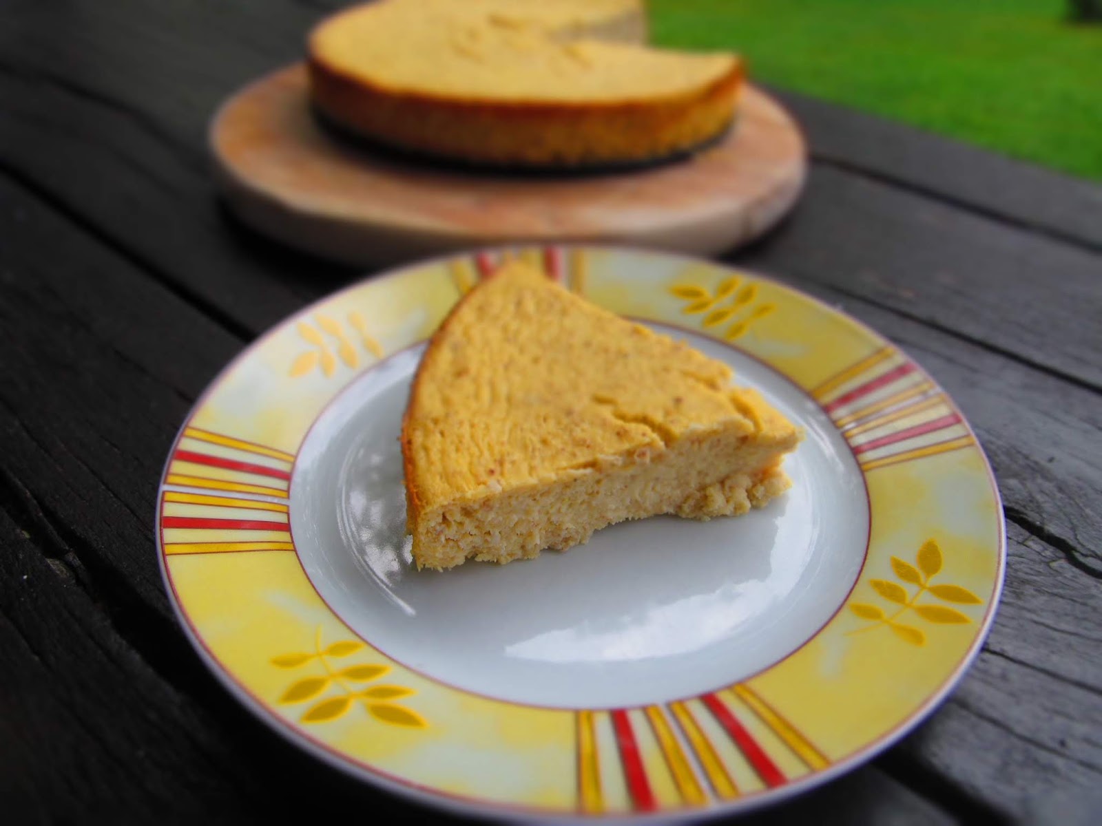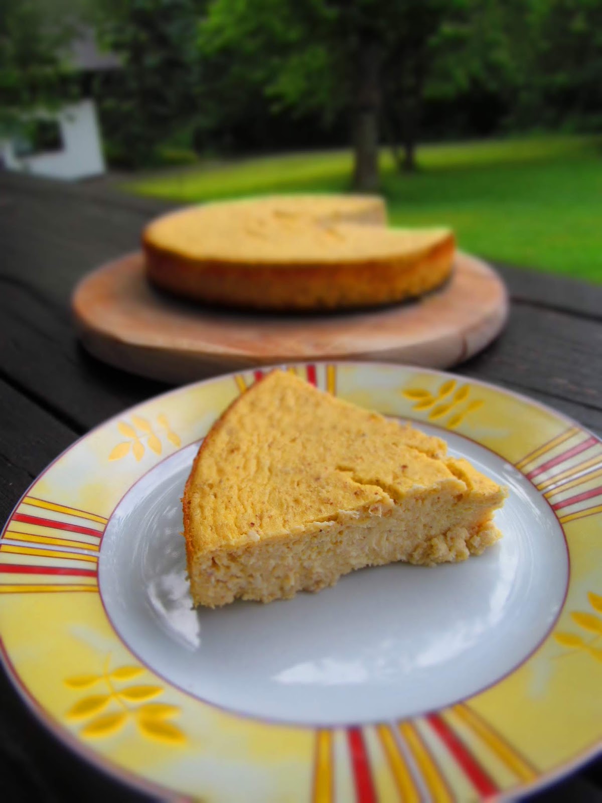 Сладостта в сладкиша идва от ябълковия мус, а сгъстяването е от пудинга и яйцата. Това е и принципът на един немски кезекухен. Оригиналната моя рецепта можете да прочетете ето тук.