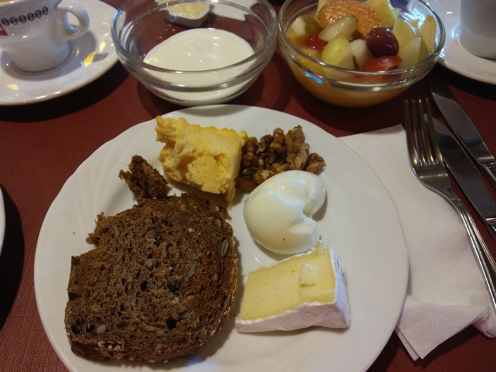 Първата закуска трудно избрах, защото нямаше много подходящи белтъцини. Но пък опитах достатъчно швейцарски сирена и много плодове.