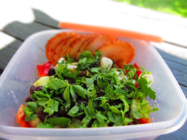 Въглехидрати: 1/2 чаша черен боб /от консерва и добре измит/ 1БВ