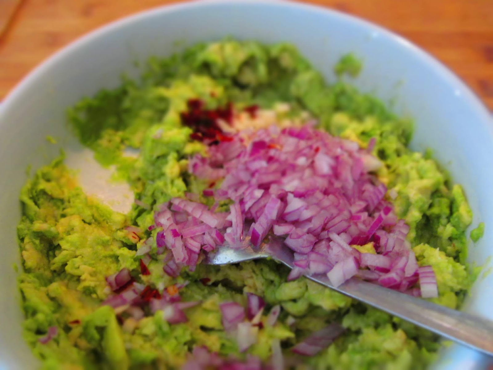 - Разбърквам и веднага заливам с лимоновия сок. Той запазва зеления цвят на авокадото и придава приятен и свеж вкус.