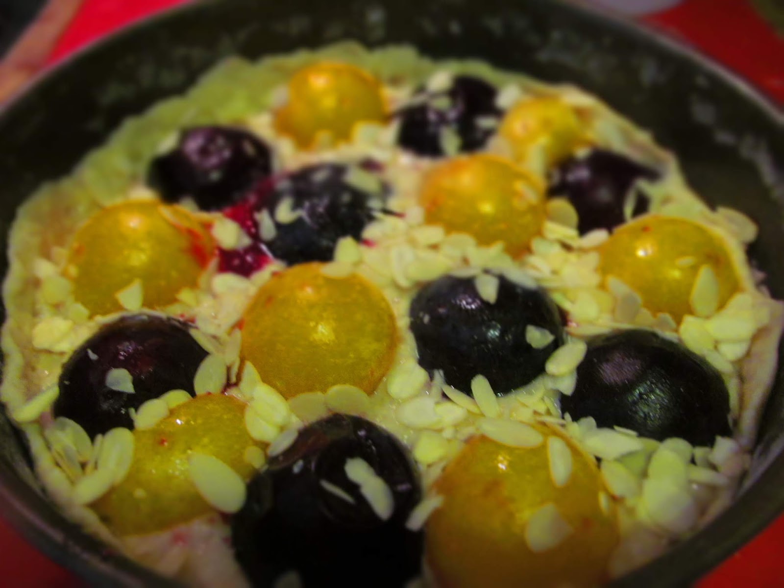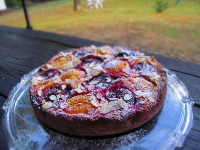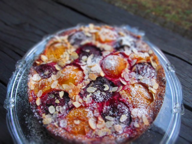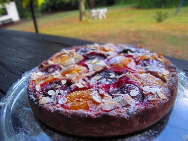 - Сложих сладкиша в предварително загрятата до 200 градуса фурна /180 градуса с вентилатор/ и пекох около 30 минути. Тук проба с клечка не е от полза, защото имаме крем и сливи, които не позволяват пробата да е суха. Но пък краищата на тестото потъмняват и така знам, че сладкишът е добре изпечен.