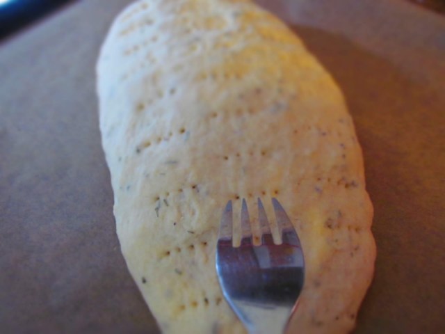 - Набодох многократно и по цялата му горна част с вилицата, точно както и мама правеше. Хлебчето е доста обемно и по време на печенето се пукна странично, което показва правилното му изпичане. Ако искате да не Ви се пука странично, пропуснете набождането с вилица, а му направете разрези с върха на ножа. Така хлебчето ще „цъфне“.