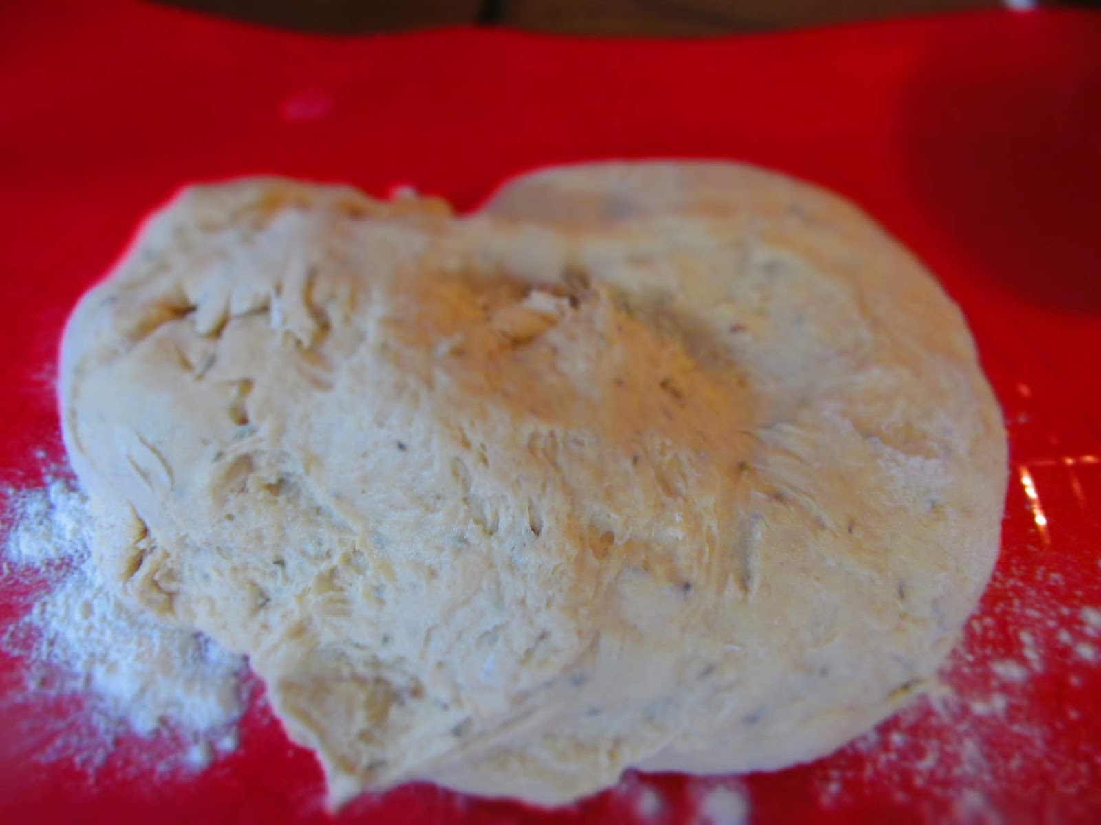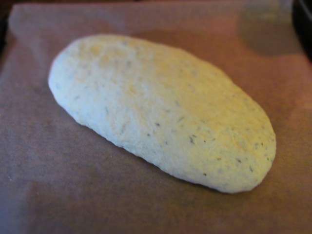 - Извадих тестото върху набрашнена повърхност, доомесих на ръка и оформих на продълговато хлебче.