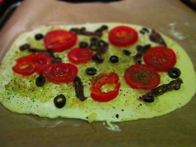 За Фламкухен с аншоа, домати и черни маслини:
