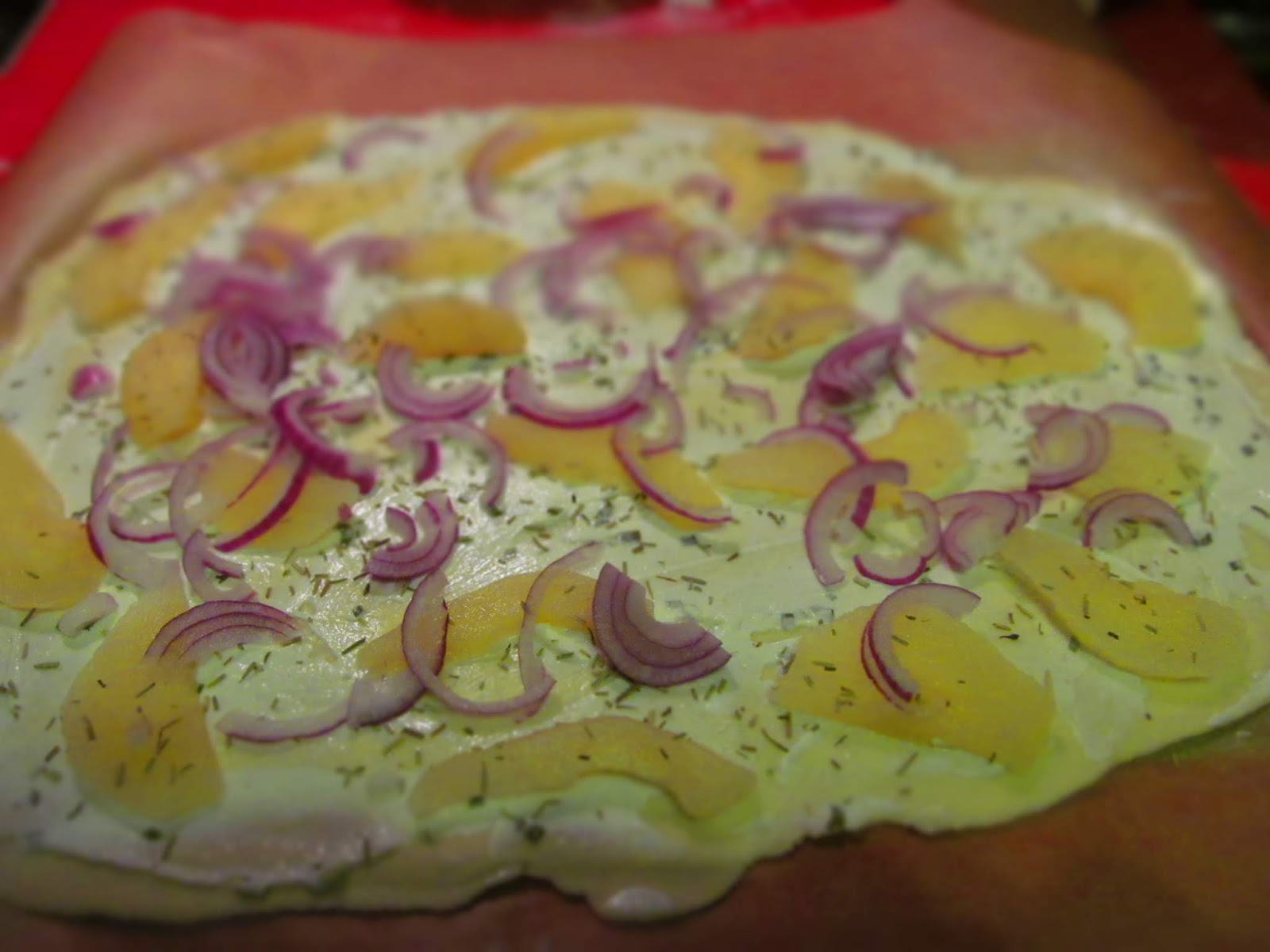 За Фламкухен с червен лук и пушена сьомга:
