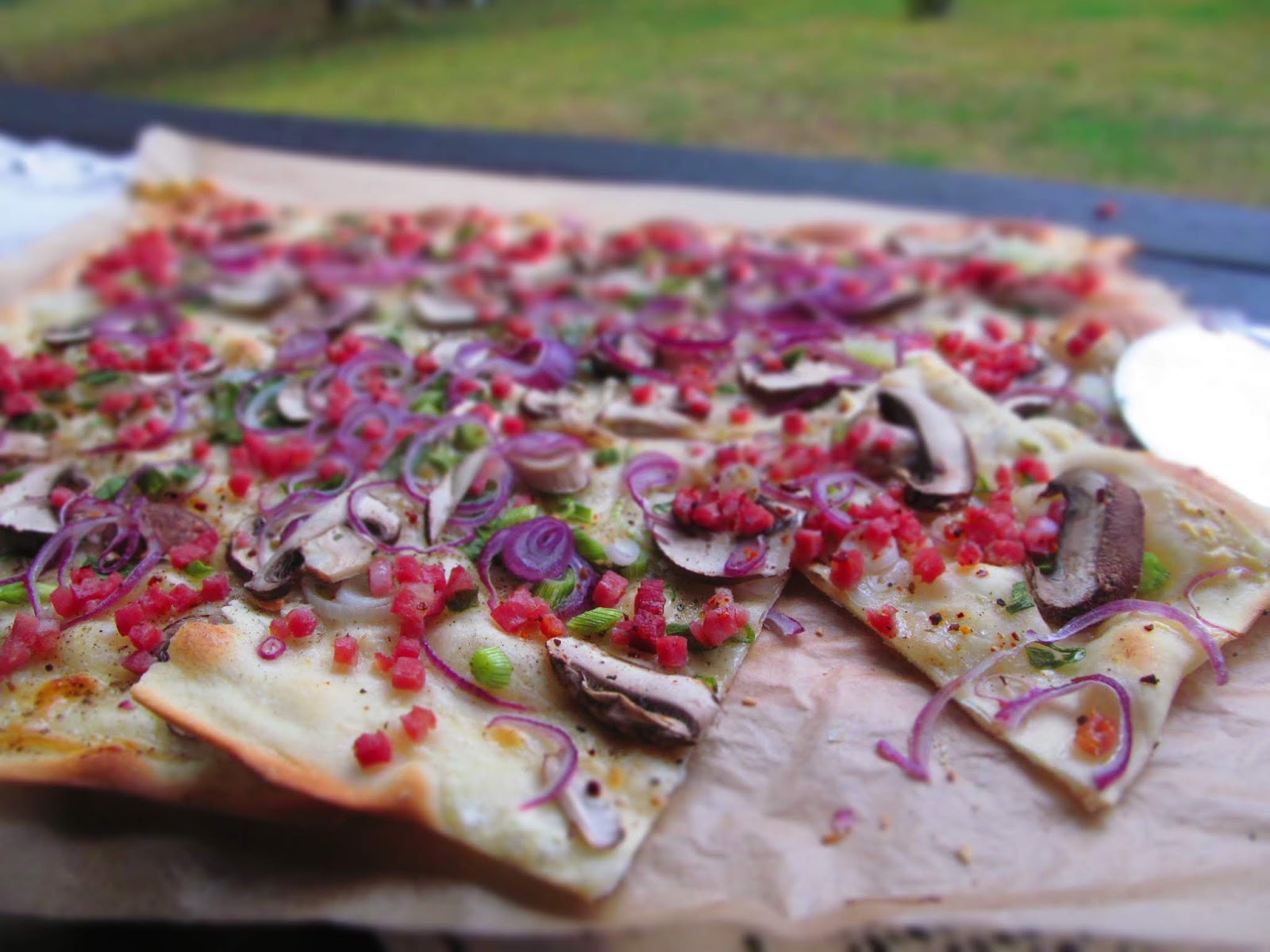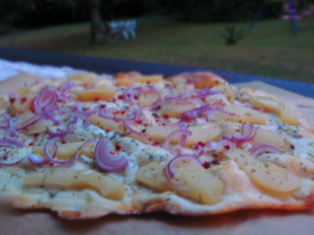Голямо удоволствие и наслада си доставихме с вечерта на Фламкухен. Това е немската пица, за която вече съм писала ето тук. Опитах я за първи път преди около 35 години в Германия и за мен винаги ще си остане немската пица. И сега , когато почти 10 години живея в ГГермания и посещавам местните базари и събори Flammkuchen присъства неизменно.