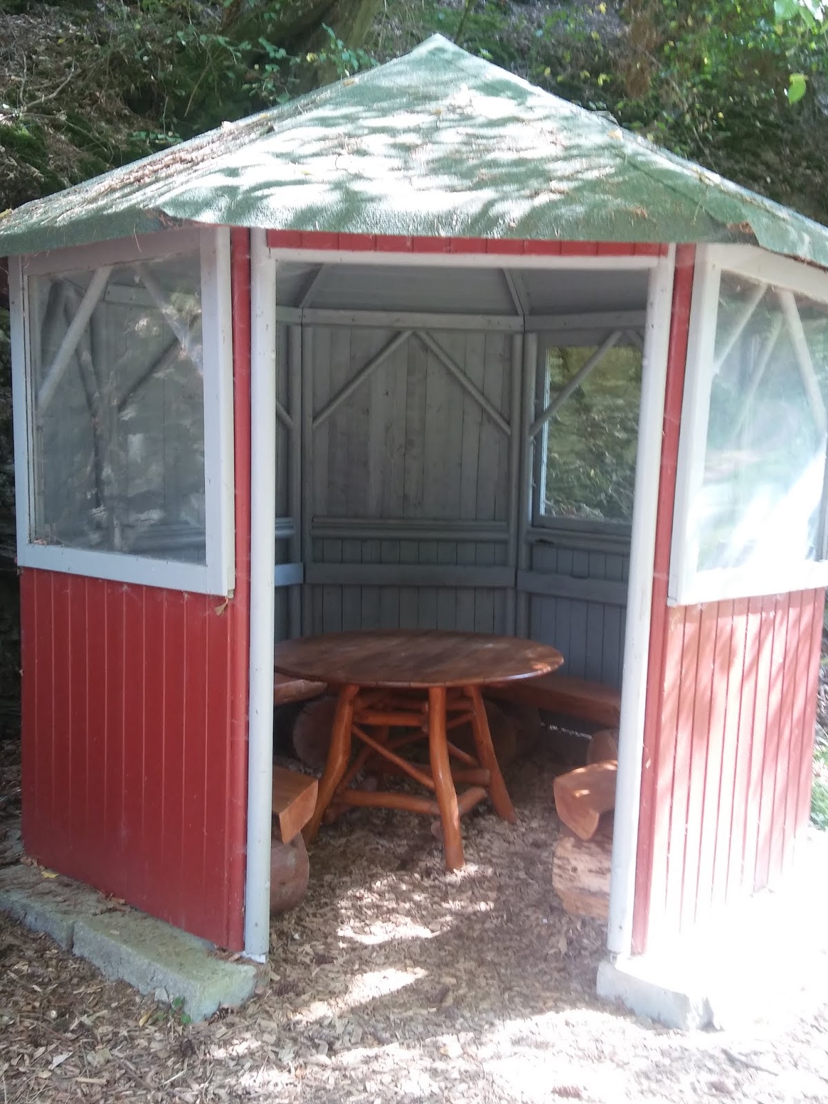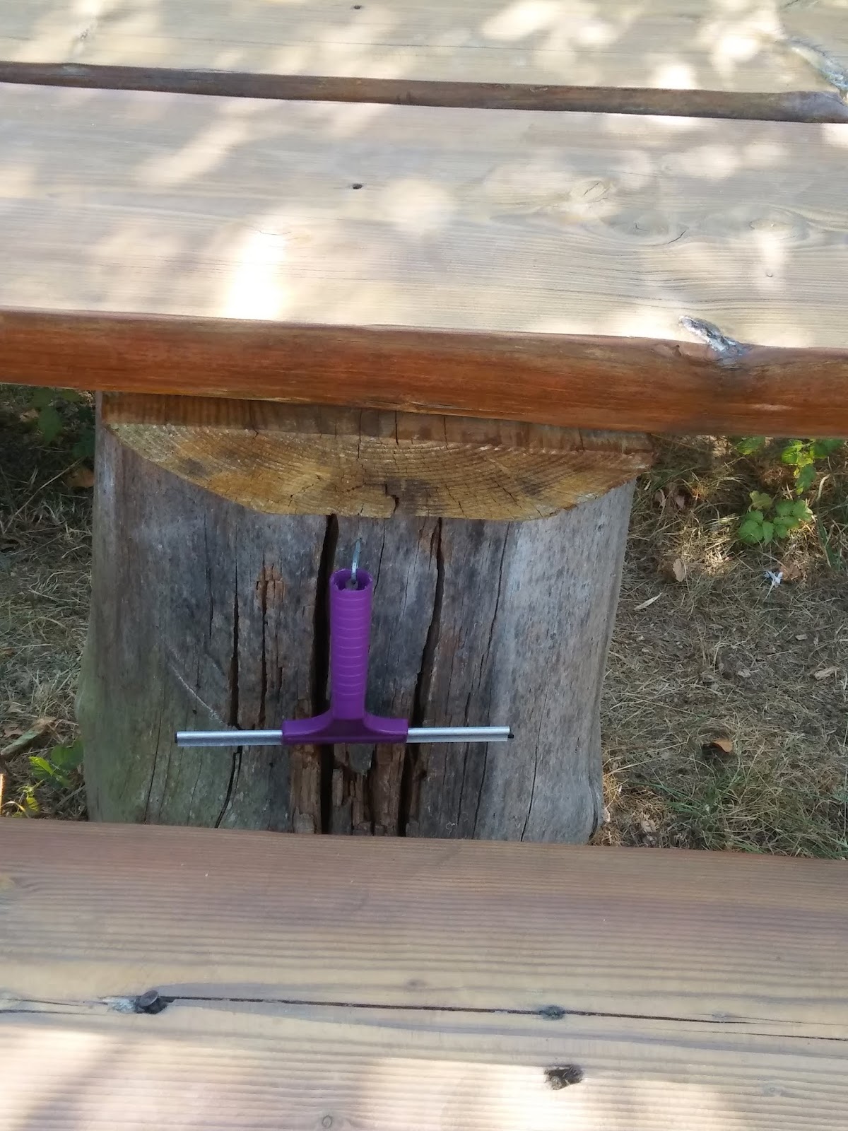 Това, което ми направи голямо впечатление по Madascher Burgherrenweg е множеството чисто нови дървени маси. На всяка маса бяха прикачени тези гуми, за да може всеки да си почисти след себе си. А гумите си бяха там. Имаше ги на всичките поне 10 такива маси!