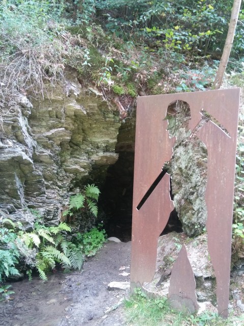 Ето този дънер и оставените инструменти много ни изненадаха. Те са там, защото това е едно от първите находища на тези скали, от които са направени почти всички покриви на къщи в Хунсрюк и от които се правят така модерните каменни плата за сервиране.