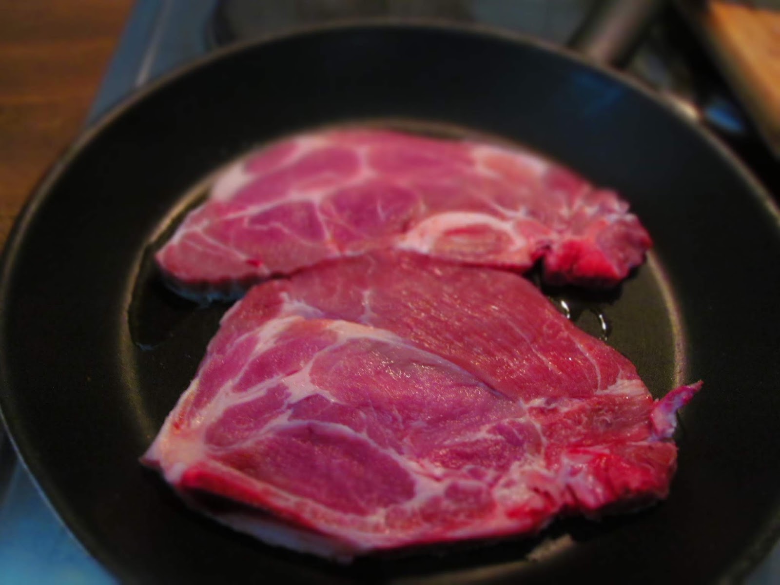 - Загрявам мазнината в тефлонов тиган и изпържвам пържолите за кратко. Можете да го направите и направо в тенджерата, в която ще ги приготвяте. Моята тенджера под налягане е много малка /2,5 литра/ и предпочетох да подготвя пържолите първо в тиган. Така избягвам и многото мазнина, заради моето балансирано хранене.
