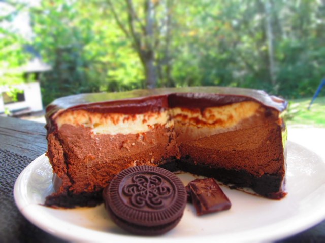 - Сложих чийзкейка да се пече в загрятата фурна без водна баня. По принцип чийзкейк се пече на водна баня, но аз имам токлова много опит с кезекухен, че рискувах и се получи. Изпече се много добре! Хубаво е да сложите под формата хартия за печене, защото моята пропусна от мазнината и доста се опуши фурната.