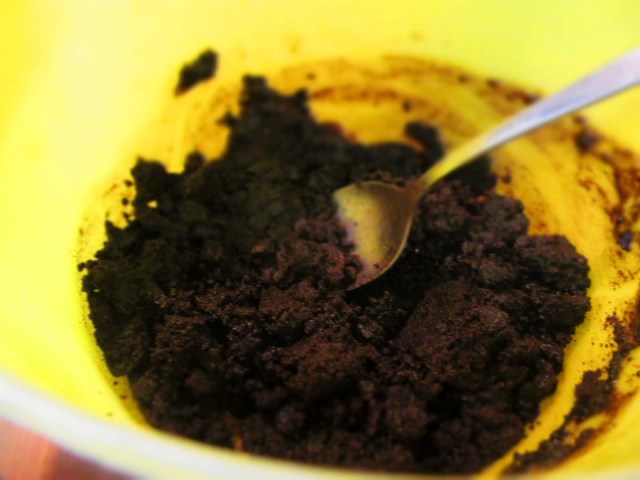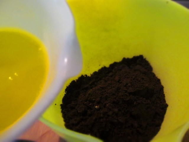 - Разтопих маслото в микровълновата фурна и добавих към смлените бисквитки.