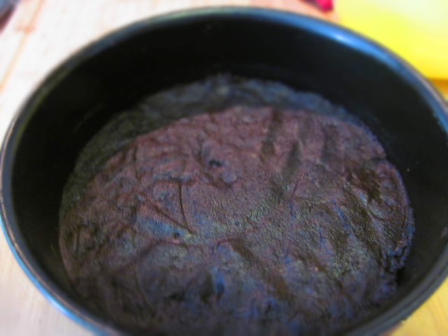- Изсипах в ненамазана форма за торта с размер 20 см и свалящи се стени.