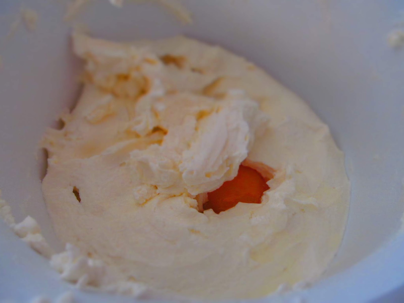 - Започнах да добавям едно по едно яйцата, като изчаквах всяко до пълното му разбиване и тогава добавям следващото. Хубаво е яйцата и маскарпонето да са с еднаква /стайна/ температура. Така опасността от пресичане се избягва.