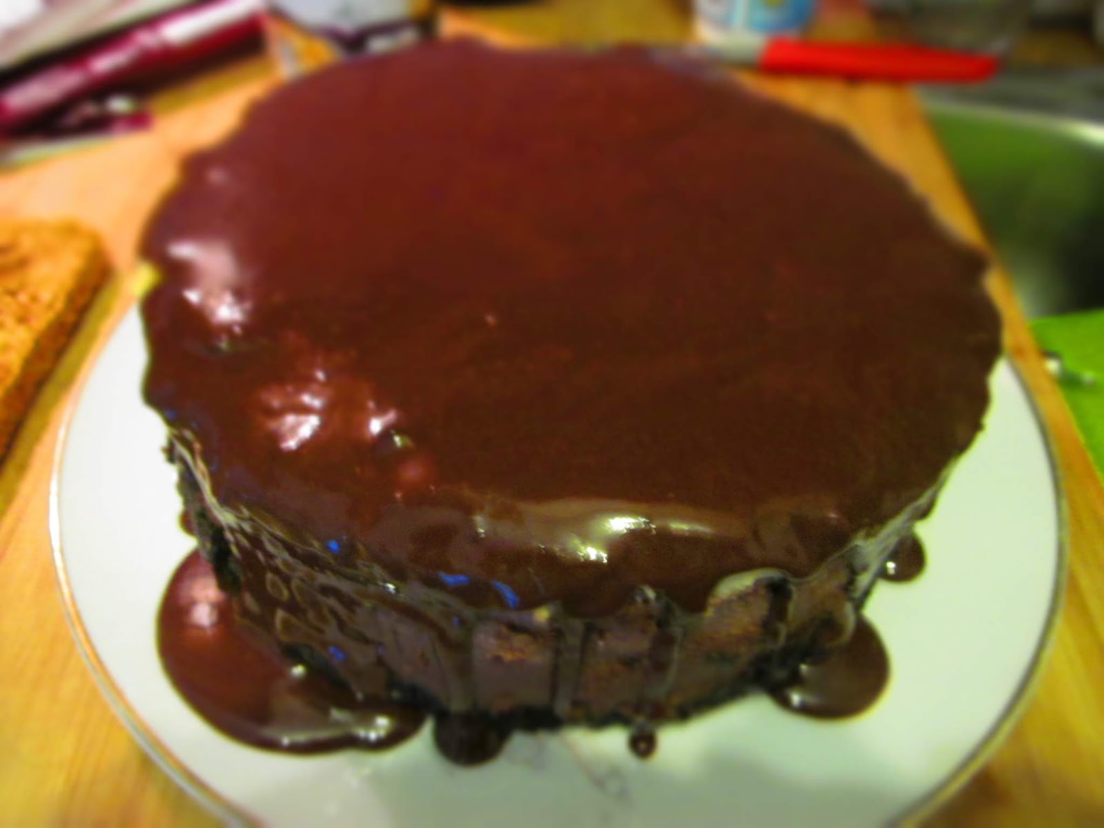 - Когато получих гладка смес и прецених, че температурата е спаднала изсипах ганаш върху чийзкейка.