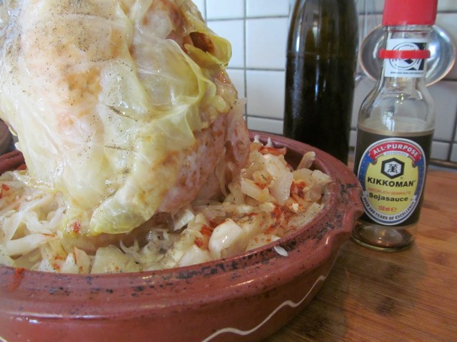 Ще се запитате откъде, накъде пък точно пиле и то по шопски. Ами живяла съм 17 години във Волуяк. Там се научих да имам кисело зеле за Петковден и да приготвям свинско с кисело зеле за събора, който е на Петковден, ама по старому – 27 октомври. Та…от там и идеята. Добавих соев сос за допълнителен вкус.