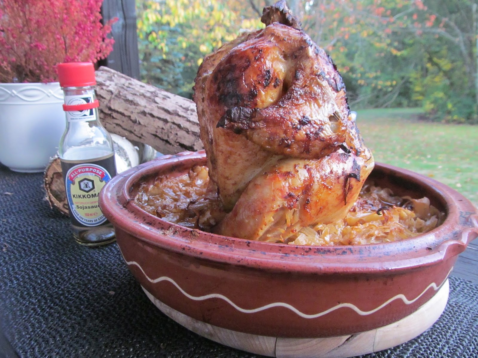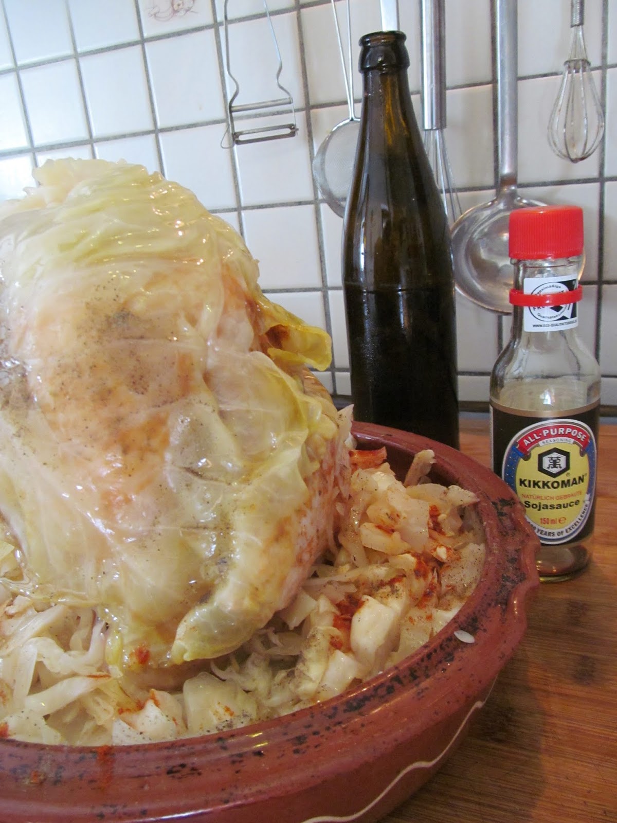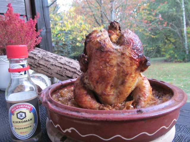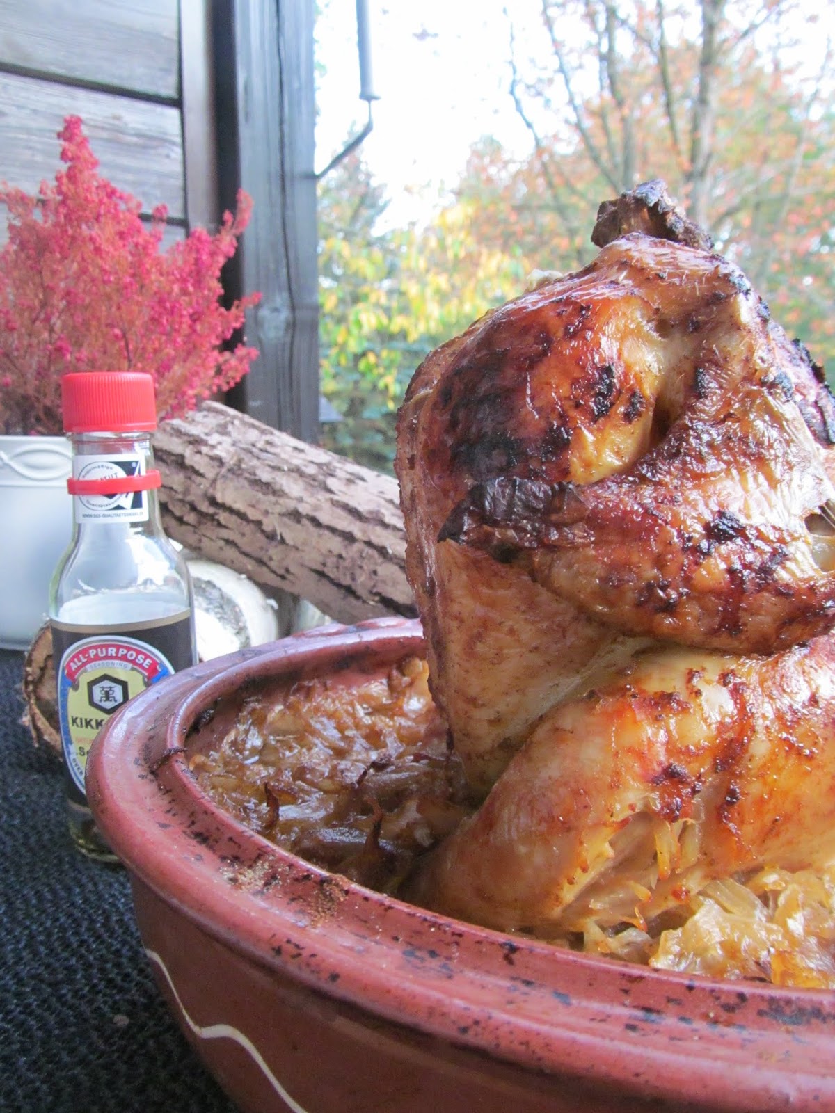 Така, че да опитаме вкуснто шопско печено пиле! Защо е шопско? Защото е с кисело зеле, бира и овкусено със соев сос Кикоман.