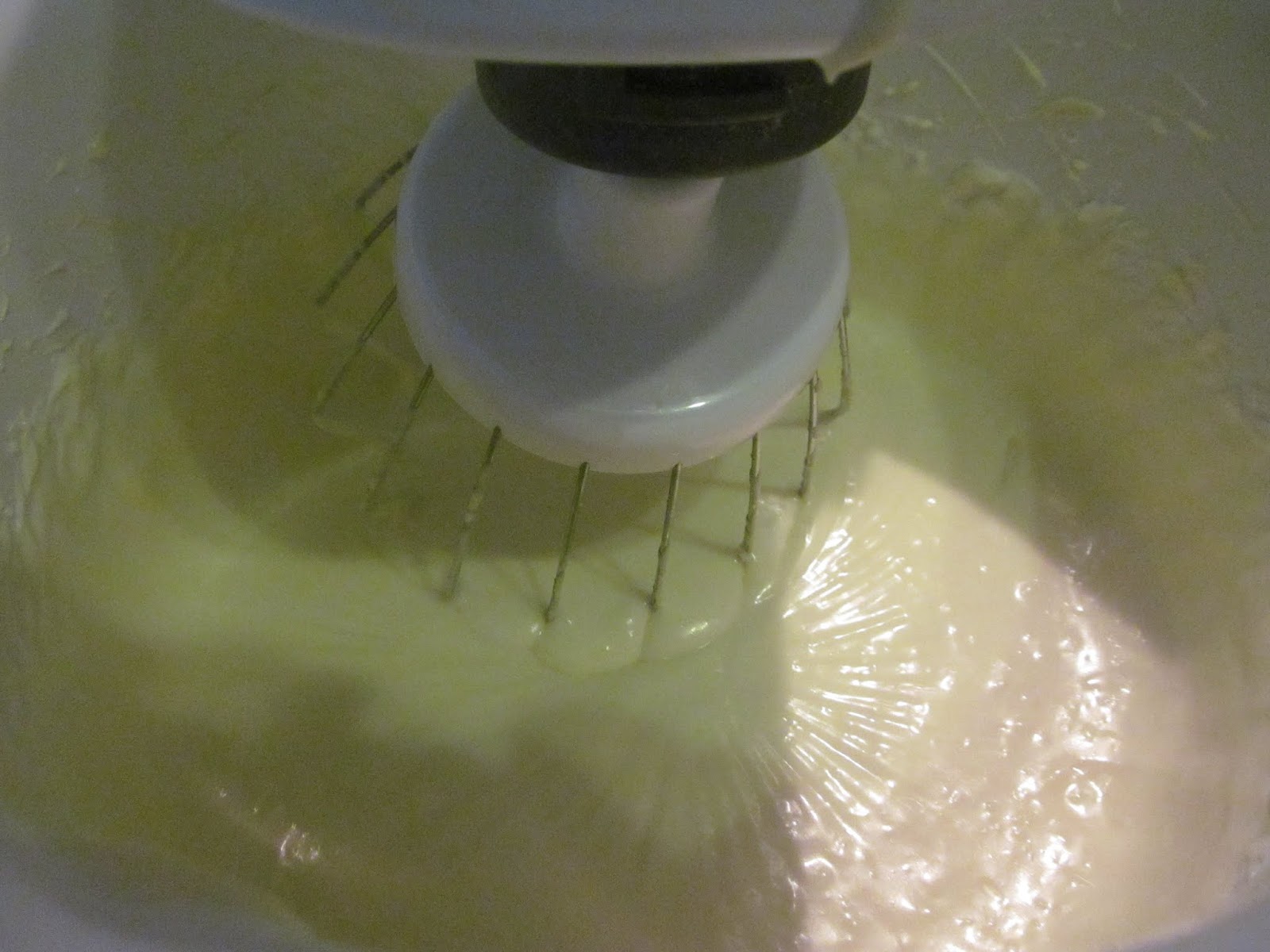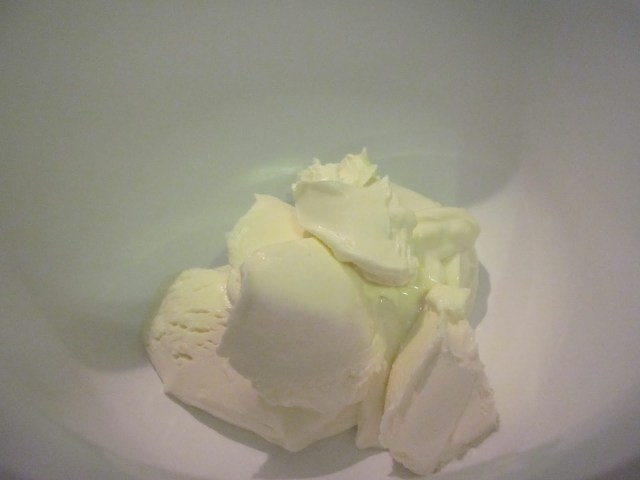 - Сиренето крема, което умишлено държах два часа на стайна температура, разбих с миксера.