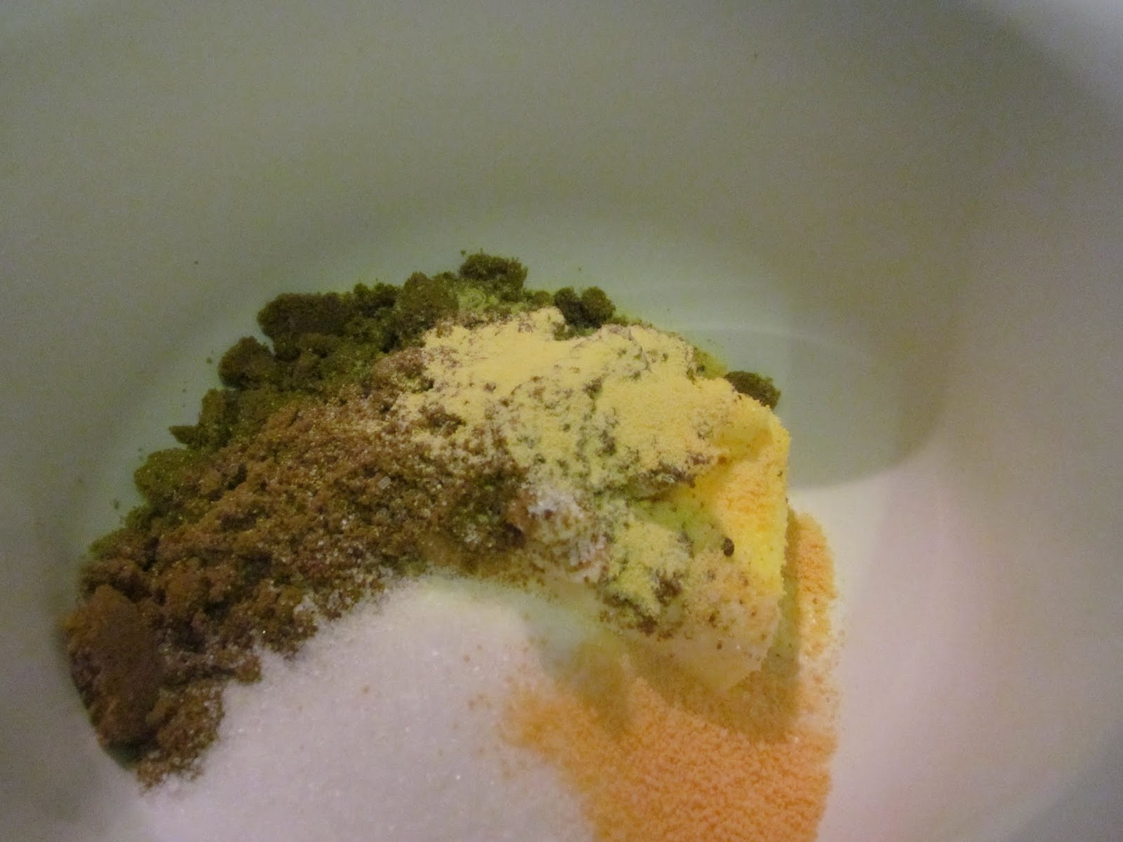 - В купата на миксера смесвам двата вида захар, корите на цитрусите, ванилията и мекото масло.