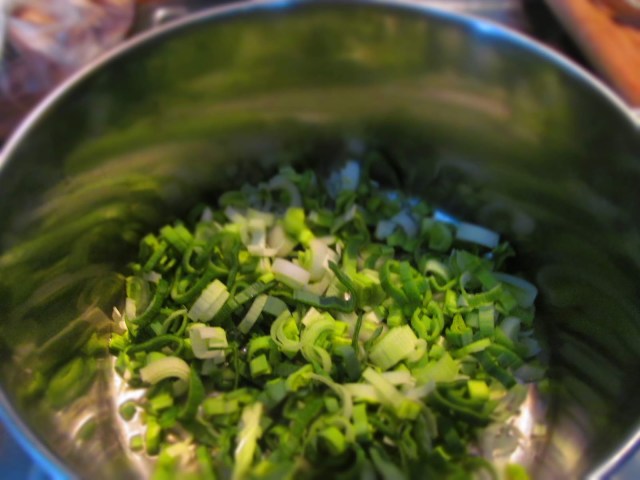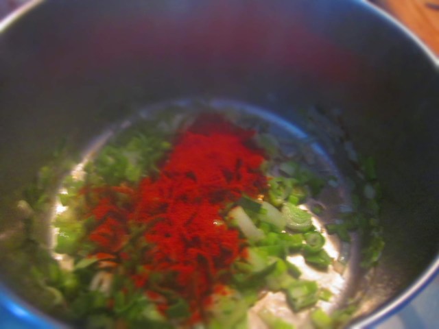 - В подходяща тенджера загрявам мазнината и в нея задушавам за кратко почистения и нарязан на ситно праз лук.