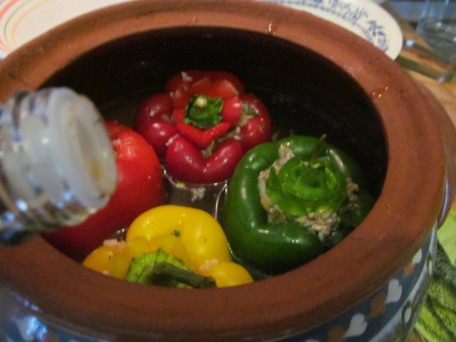 - С една клечка за зъби надупчих на четири места чушките. Това съм научила от моята свекърва. Така бульонът навлиза във вътрешността на чушките и плънката се сварява много добре и равномерно. А тези модерни, цветни кабми са доста дебели.