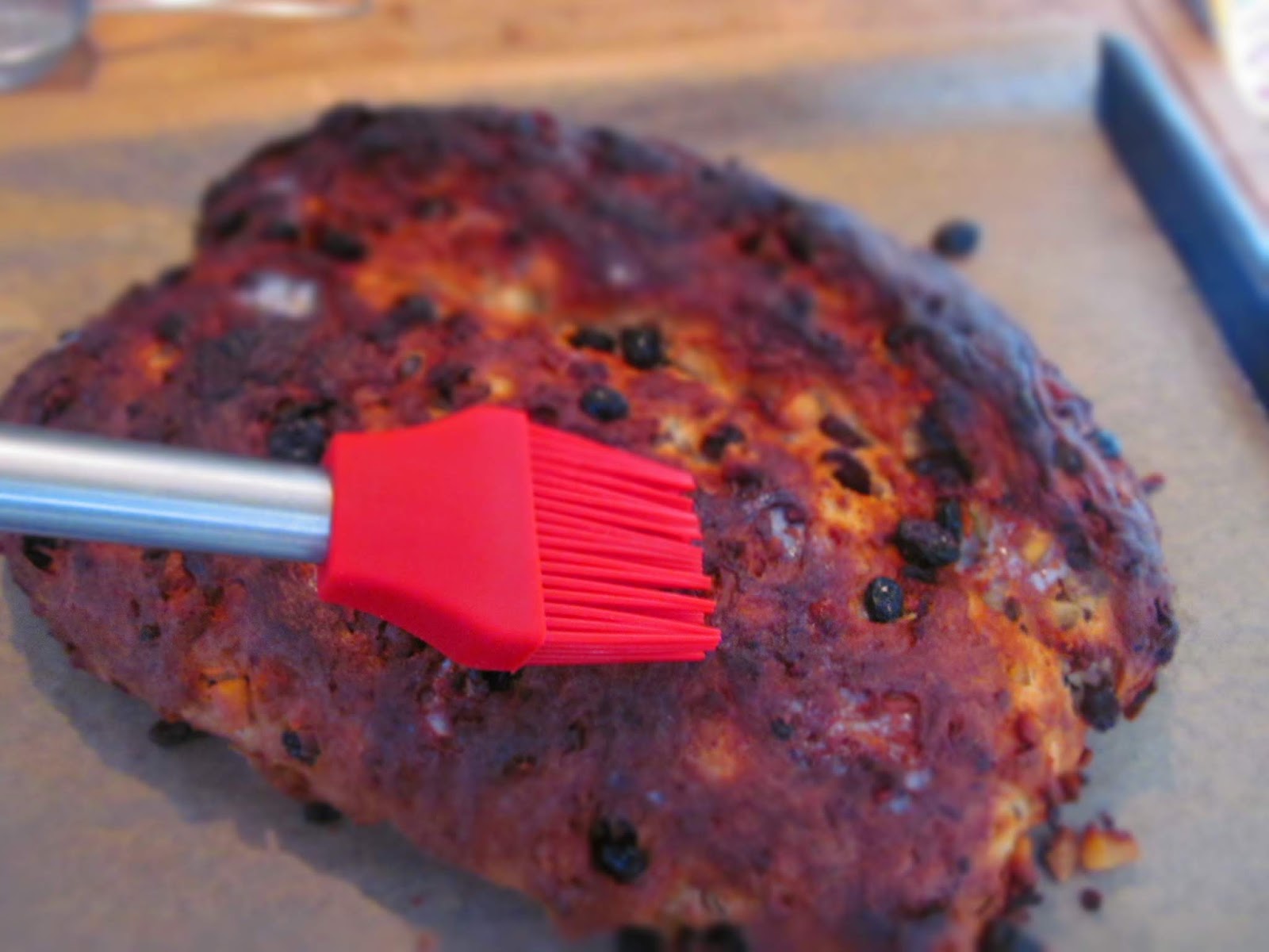 - Останалото масло разтопявам и с него намазвам с четка изпечения до златисто и още горещ щолен.