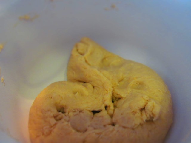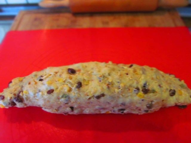 - Втасалото тесто прехвърлям отново върху силиконовата подложка, премесвам нежно, оформям на руло.