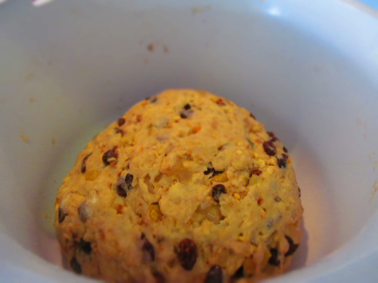 - Добавих към него накиснатите плодове и ядки. Месих още за кратко с миксер.