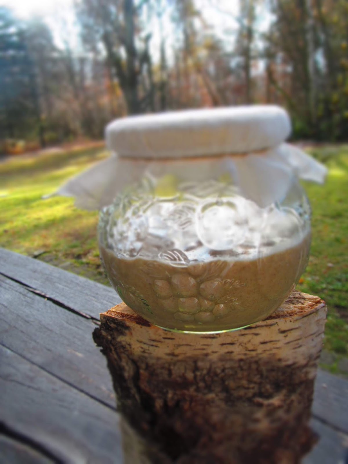 - Та…на 12 -ия час взех една дървена лъжица и разбих за кратко моя ръжен квас, заедно с коричката. Бърках, бърках и получих лепкава каша.