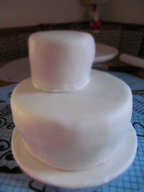 - На другия ден обличам с фондан борда на тортата, голямата торта и малката торта.