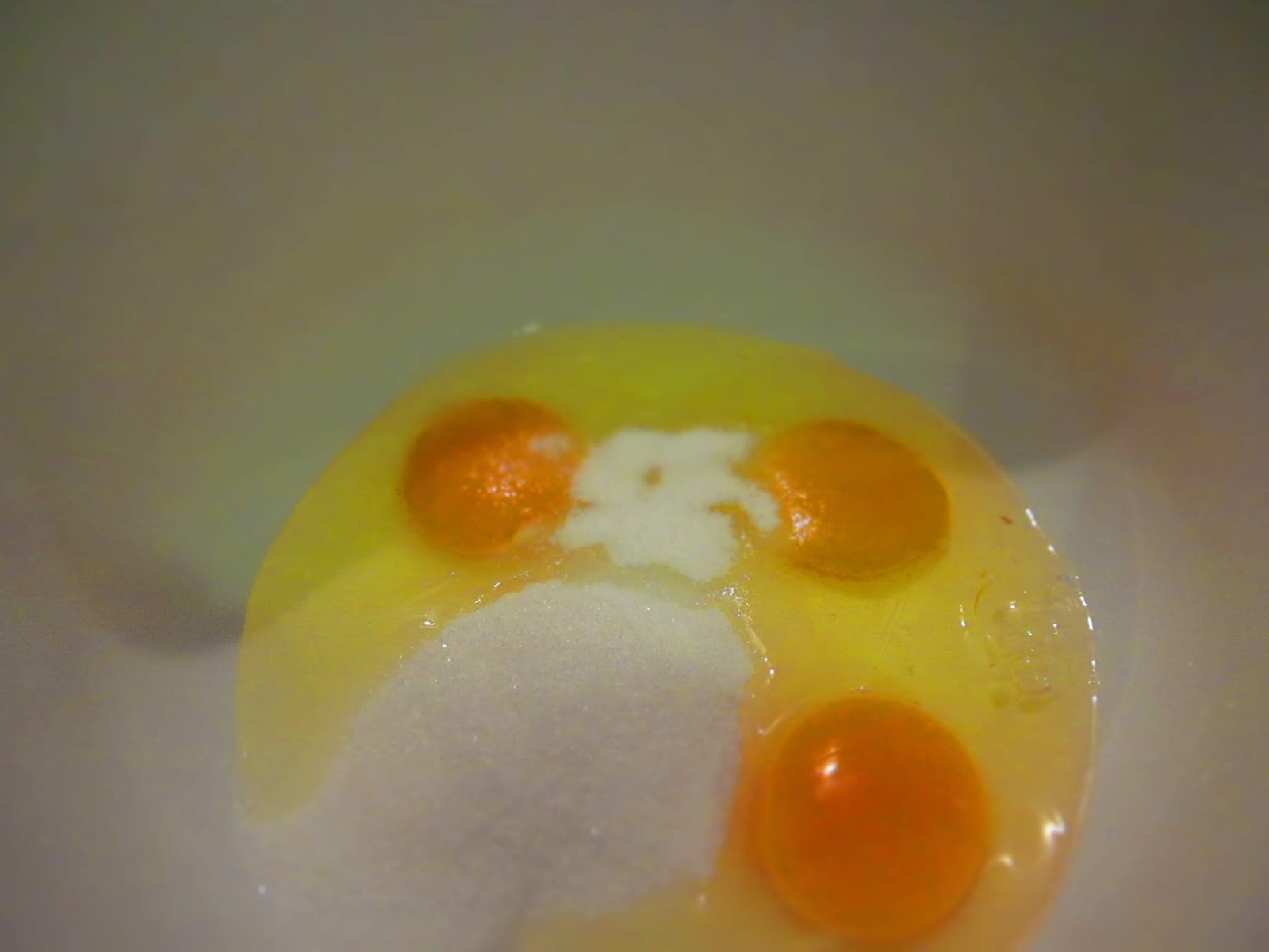 - Яйцата, захарта и ваниловата захар смесвам и разбивам до пухкав крем.