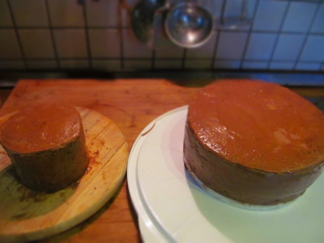 - И двете торти измазвам с ганаш и охлаждам за една цяла нощ в хладилник, но по отделно една от дурга.