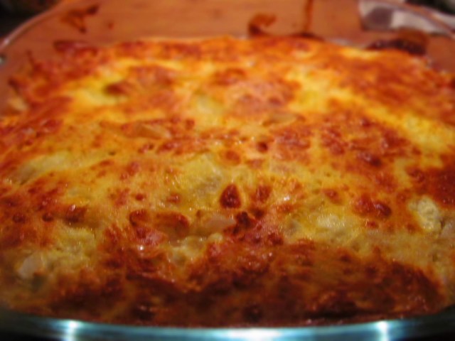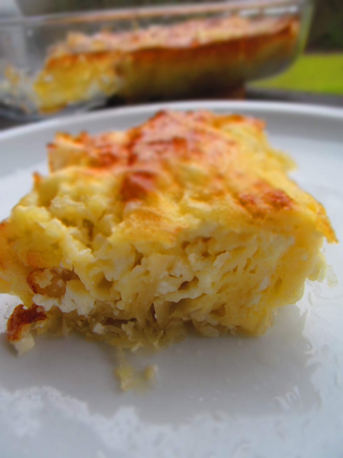 - Изливам останалата смес върху баницата.