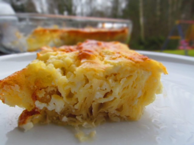 Когато се събудихме сутринта, Динко спомена, че му се яде баница. Добре, че бях купила готови, но немски кори. Те са като за щрудел, но много приличат на нашите фини. Пакетчетата са по 300 гр., което е идеално за двама – трима човека.