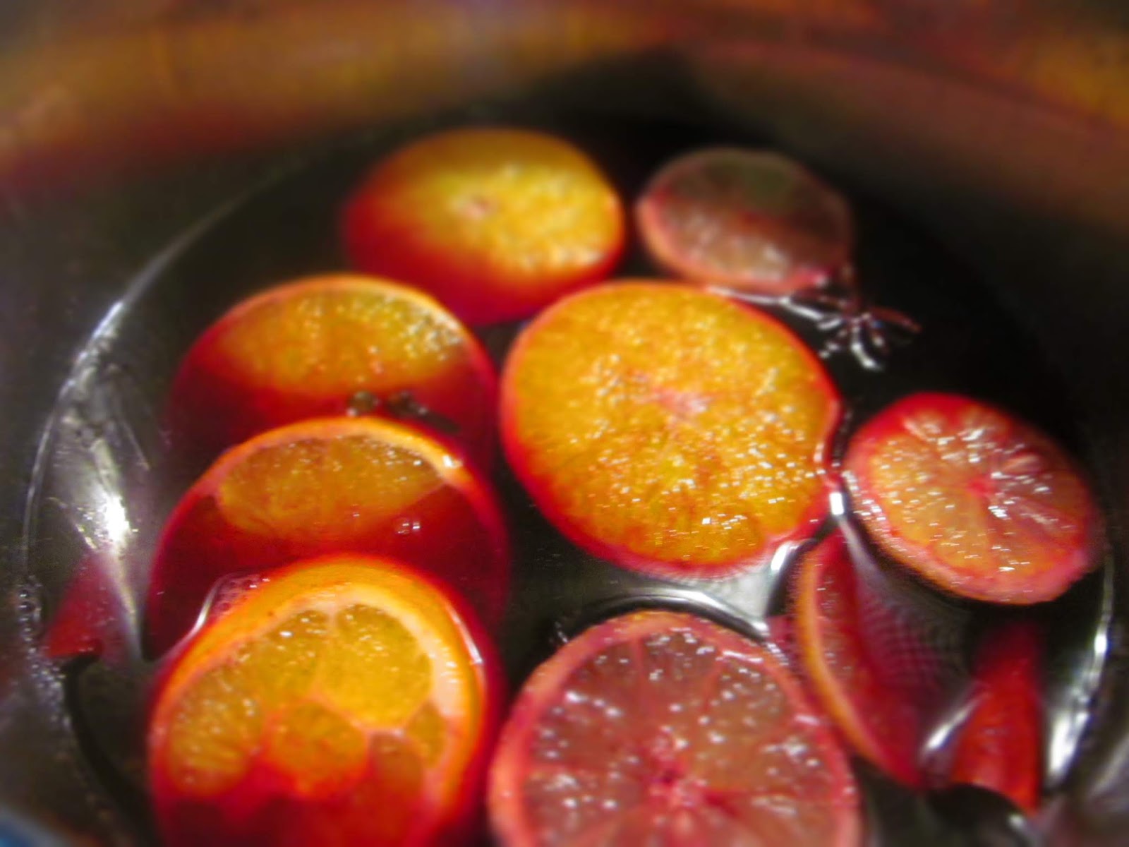 - Нарязвам лимона и портокала на филийки и добавям към горещото вино.