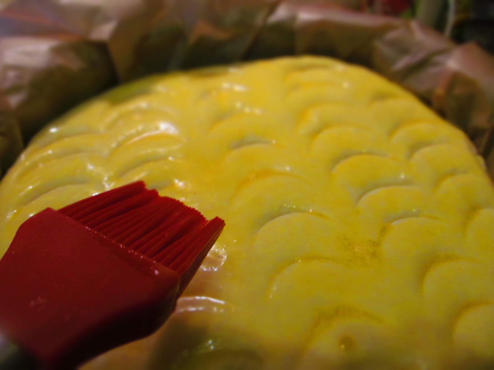 - Разбих жълтъка с прясното мляко и с него намазах цялата питка.