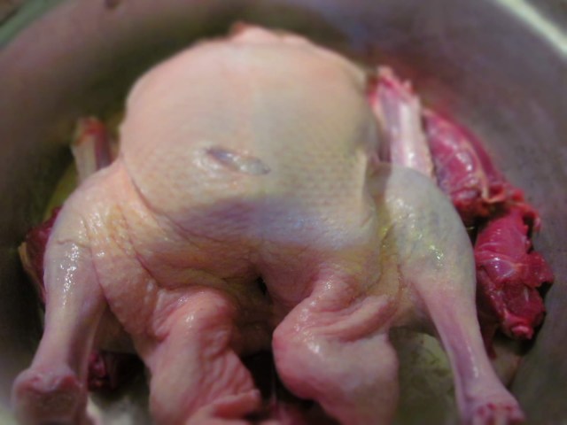 - Сложих патицата в тесен съд, за да мога лесно да я напълня и зашия.