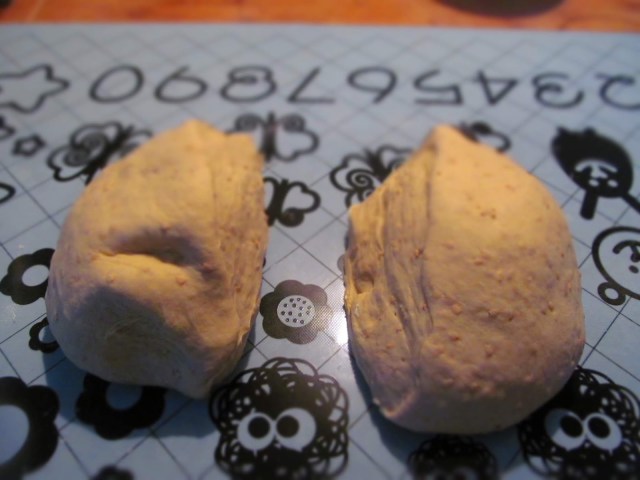 - През това време загрявам фурната до 220 градуса и пека втасалите хлебчета около 40 минути.