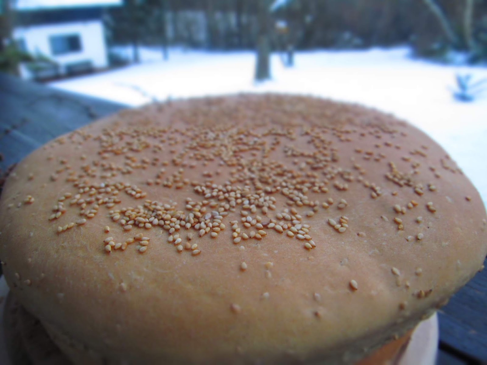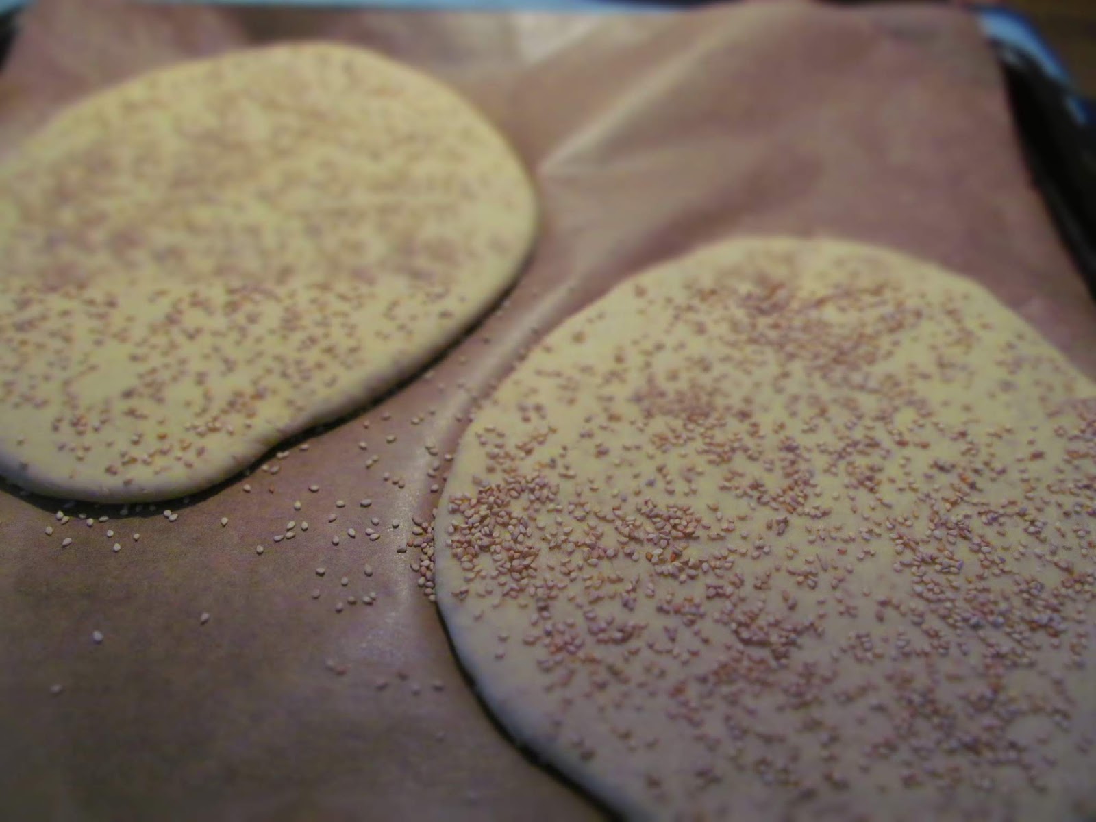- Подреждам двете хлебчета в тава с хартия за печене и поръсвам с останалия сусам.