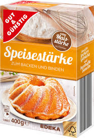 - Ето в такива опаковки е немското царевично нишесте като в зависимост от марката е и опаковката, но нишестето е в кутии и се намира на рафтовете при картофеното пюре и сгъстителите за сосове. Тази марка е на Едека.